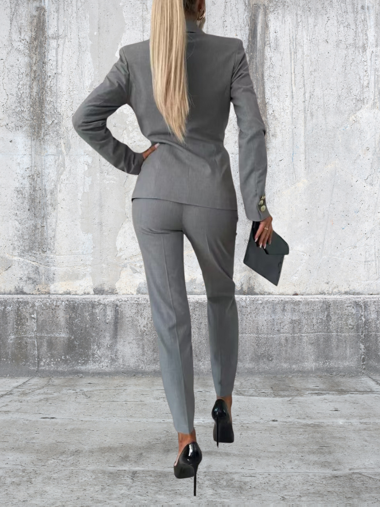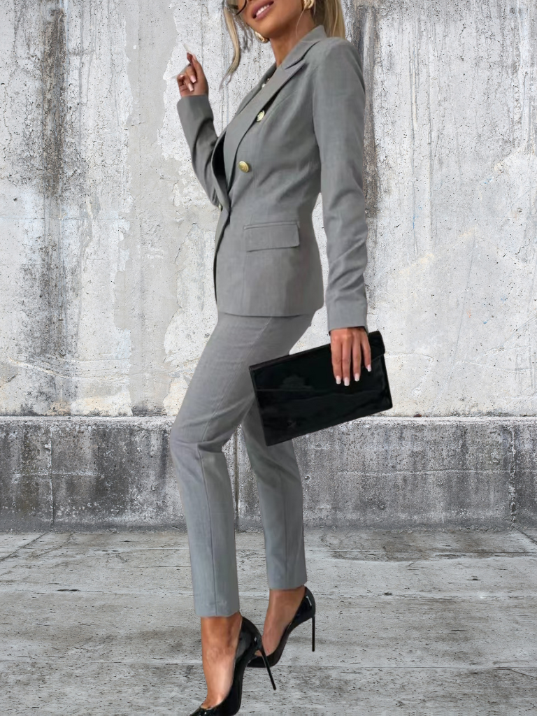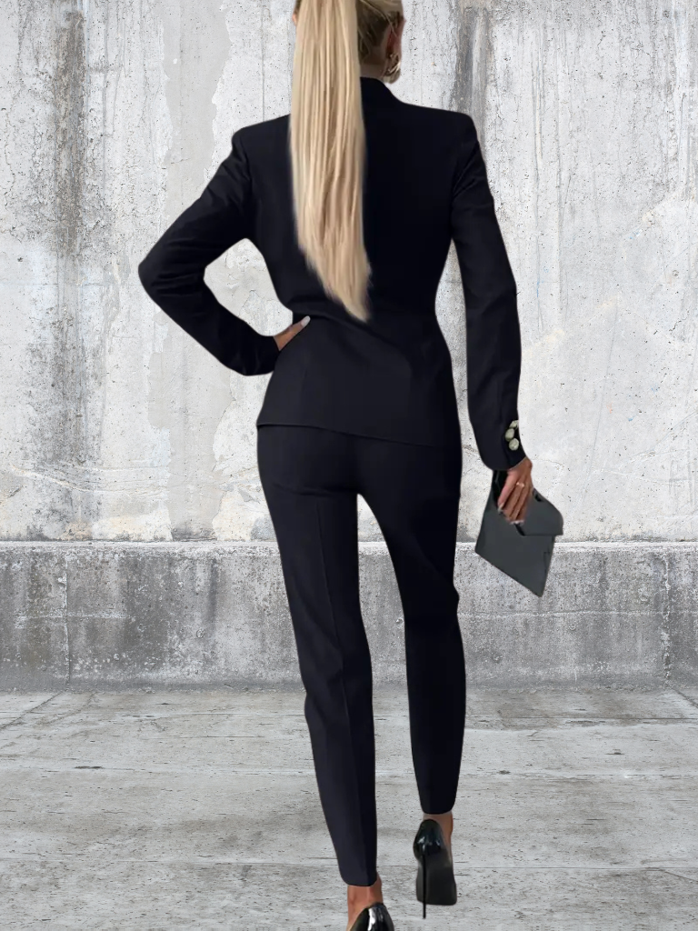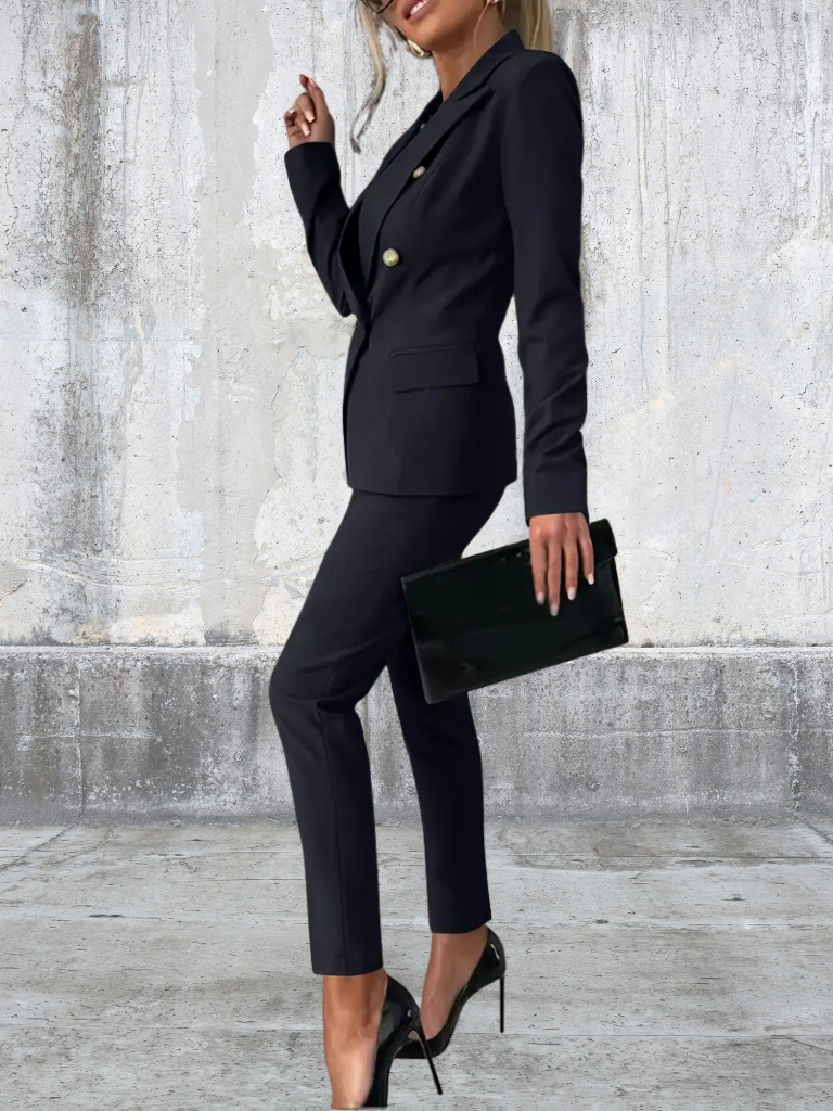 Sky is the definition of modern power dressing. With its sharp double-breasted blazer, gold-tone buttons, and tailored slim-fit trousers, this set is designed for the woman who owns every room she walks into. Whether you’re heading to an important meeting, an after-work drink, or a city dinner, Sloane delivers effortless sophistication.